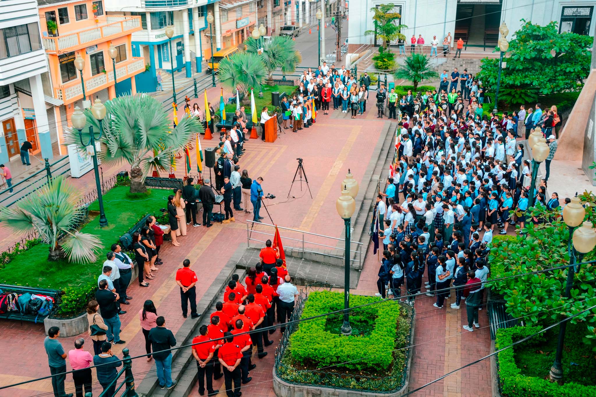 La alcaldesa Teresa Feijóo, inauguró oficialmente el Momento Cívico, en un acto que contó con la presencia de las unidades educativas, autoridades locales, civiles, militares, eclesiásticas, de policía, señores Concejales representantes del Concejo en pleno, así como los representantes de la sociedad civil e instituciones cantonales, realizado este lunes 29 de mayo, en el parque central.