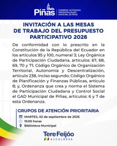 Invitación a las mesas de trabajo del Presupuesto Participativo 2026